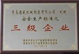 青島市安全生產(chǎn)標(biāo)準(zhǔn)化三級企業(yè)