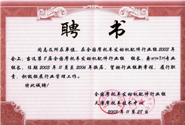 全國摩托車發(fā)動機(jī)配件行業(yè)組組長聘書