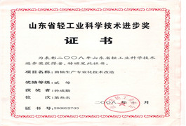 山東省輕工業(yè)科技進(jìn)步獎證書