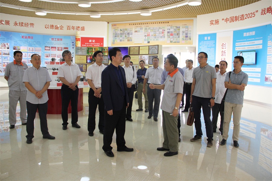9月28日,省民營企業(yè)高質量發(fā)展服務2隊隊長鄭立波一行10人,由青島市工商聯(lián)劉傳華秘書長陪同來公司開展調研和對接,我公司董事長孫佩璋、黨委書記潘勝利、總經理張海德、管理總監(jiān)李建平陪同。服務隊的各位領導參觀了科技文化館、信息化系統(tǒng)管理平臺、各生產車間。最后,在公司培訓中心現(xiàn)場聽取我公司發(fā)展情況匯報,對我公司在新舊動能轉換、高質量發(fā)展等方面取得的成績給予高度評價,雙方就今后企業(yè)高質量發(fā)展服務相關工作進行了初步探討交流。
