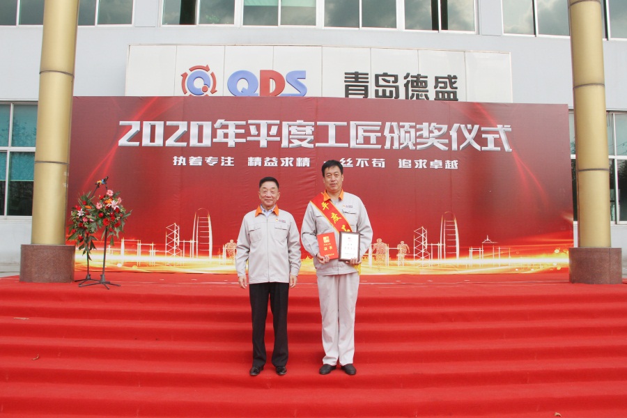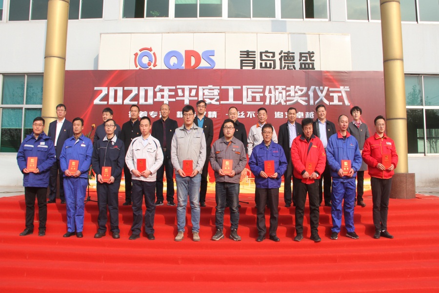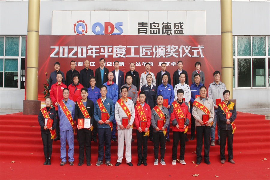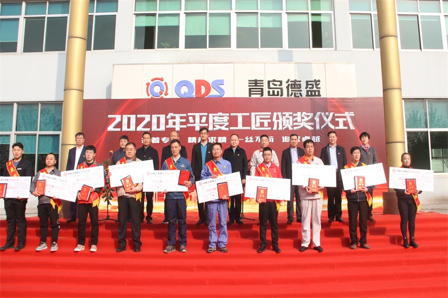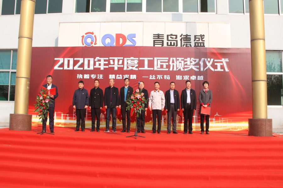 11月27日上午,平度市首屆“平度工匠”表彰頒獎儀式在青島德盛機(jī)械制造有限公司隆重舉行。平度市委常委、市統(tǒng)戰(zhàn)部長、市總工會主席王富軍同志,青島德盛機(jī)械制造有限公司董事長孫佩璋同志,市委黨史研究中心副主任、市農(nóng)村黨員干部現(xiàn)代遠(yuǎn)程教育管理中心辦公室主任王鵬杰同志,市人社局黨組成員陳希成同志,市發(fā)改局黨組成員、副局長姜學(xué)慶同志,市工商聯(lián)黨組成員方永樂同志,市總工會黨組成員、副主席趙笑麗同志,市總工會黨組成員王玉芬同志出席頒獎儀式,并為獲得首屆“平度工匠”稱號的10名同志頒發(fā)了榮譽(yù)證書和獎金,為獲得“平度工匠”提名獎的10名同志頒發(fā)了榮譽(yù)證書。