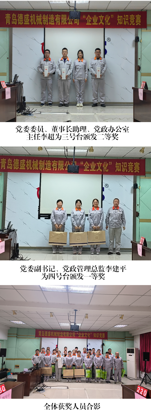 為進一步學習宣傳公司企業(yè)文化的豐富內涵,不斷增強員工弘揚 和踐行企業(yè)文化的自覺性,提升企業(yè)“軟實力”,2023 年 3 月 16 日下午,青島德盛機械制造有限公司組織開展了企業(yè)文化知識競賽活動, 公司董事長孫佩璋,黨委副書記、黨政管理總監(jiān)李建平,黨委委員、董事長助理、黨政辦公室主任李超,總經理助理、人力資源部經理劉 建芹出席本次活動。